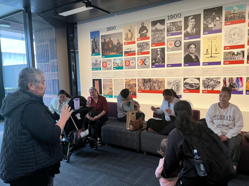 Moerangi Falaoa-Raupaki (former E Tū Whānau kaimahi) runs a wānanga with Pōmare wāhine